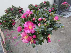 校庭の椿が満開。