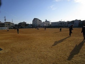 朝から運動場へ。