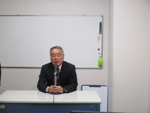 放送集会。校長先生のお話。