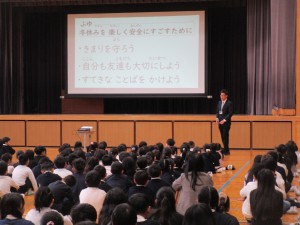 幼稚園児が退室した後、生徒指導の先生のお話と続きました。