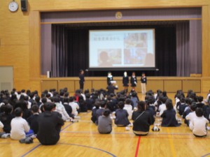 給食委員会主催で調理員さんにみんなでお礼を言いました。