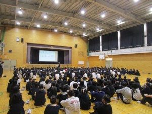 式後、生徒指導の先生のお話。